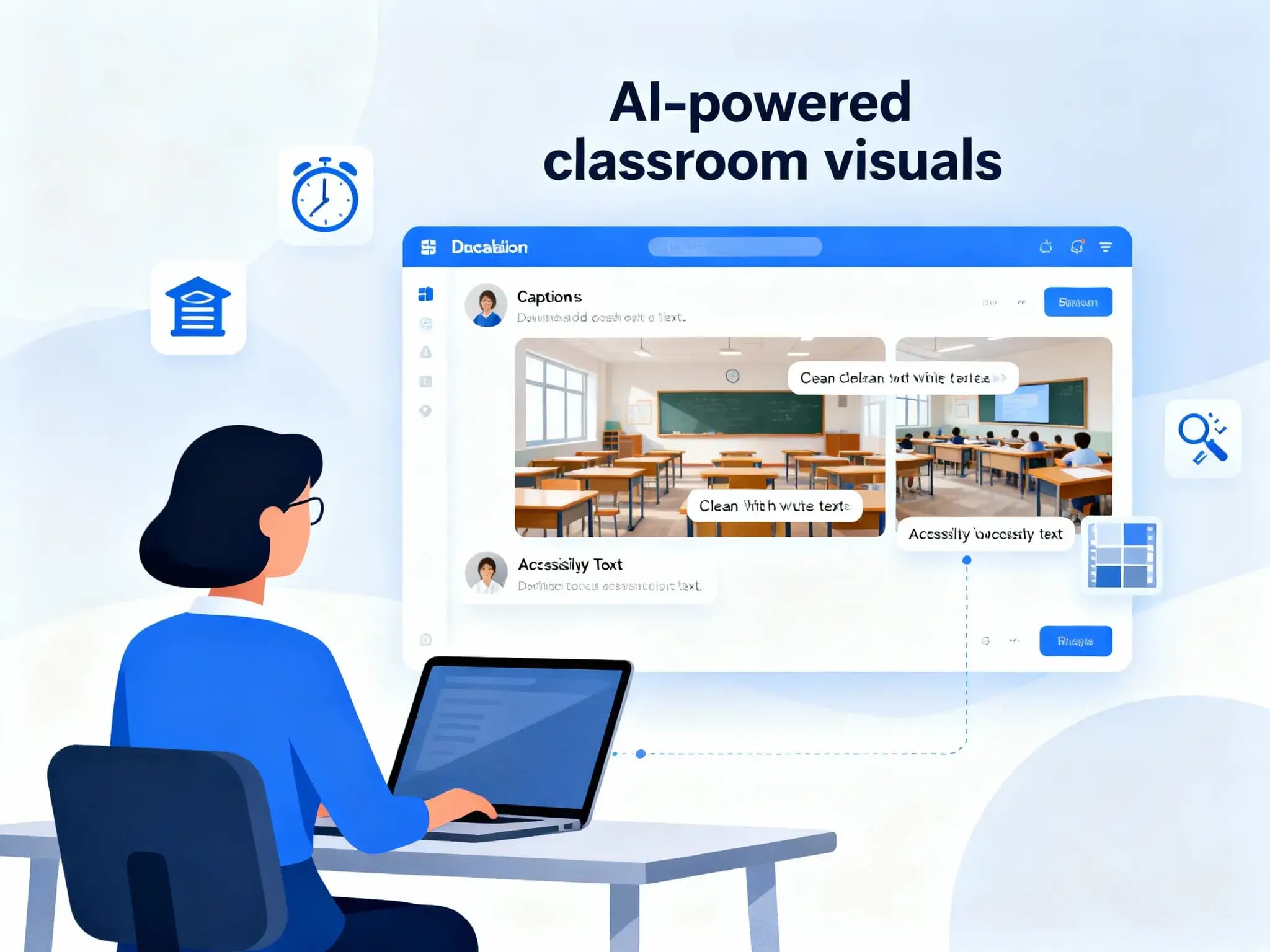Teachers and content teams spend a lot of time manually editing imagery—adding titles, resizing, generating alt text, or embedding course metadata. Manual image editing slows content creation and leads to inconsistent visuals and missing accessibility text.